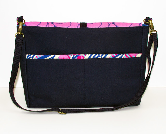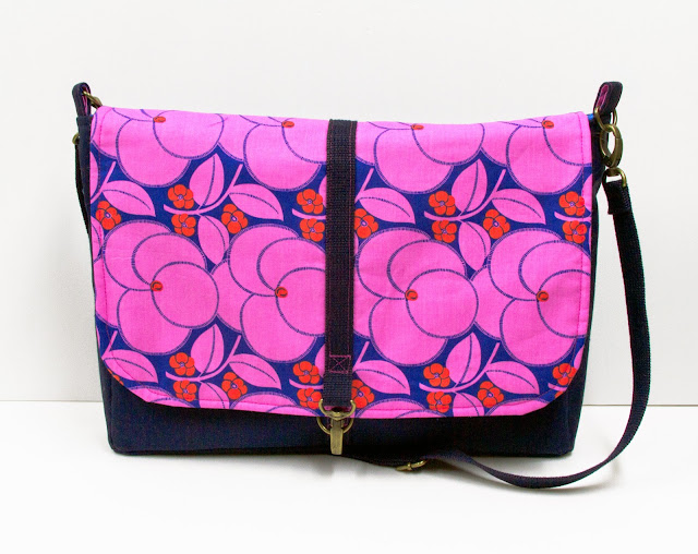 Thanks to Kristie from OCD: Obsessive Crafting Disorder, this great tutorial gave my the measurements and directions I needed to create this adorable messenger bag. I used a heavy weight navy twill for the body of the bag. I lined it with quilt batting and a blue flannel.