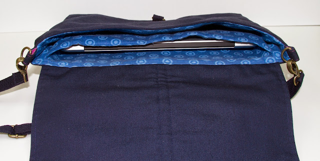 All layers and pockets are padded with quilt batting and flannel for softness. I put a divider inside so the laptop can sit separate from the charger.