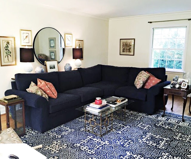 Here is the start of my new feedsack quilt that I am making for my cousin to celebrate her one year wedding anniversary and as a house warming present. She and her husband were married last December in Washington DC, near Dupont Circle and their home is located in suberb outside of Washington DC. It's beautiful. Below is a picture of their new home and of the room I am trying to make something for....
